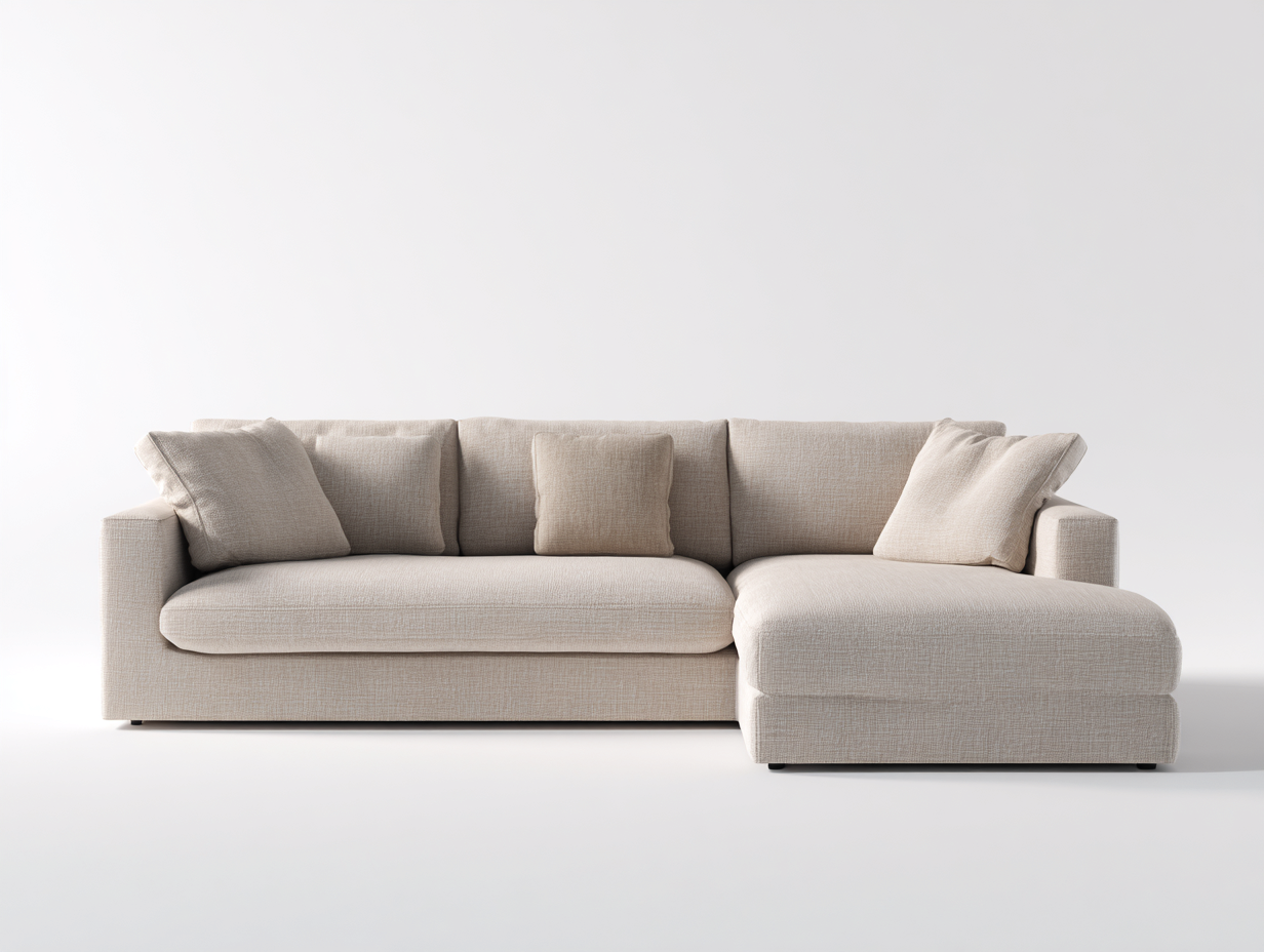 Divano angolare minimalista adatto a spazi moderni.